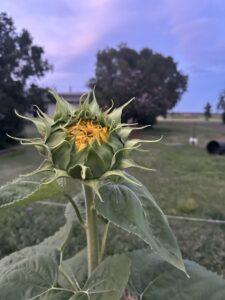 The bees arrived, the seeds formed and the weight of the seeds became so heavy, that the beautiful flowers succumbed to the weight and could no longer turn with the sun. A few weeks later that one seed became hundreds of seeds.